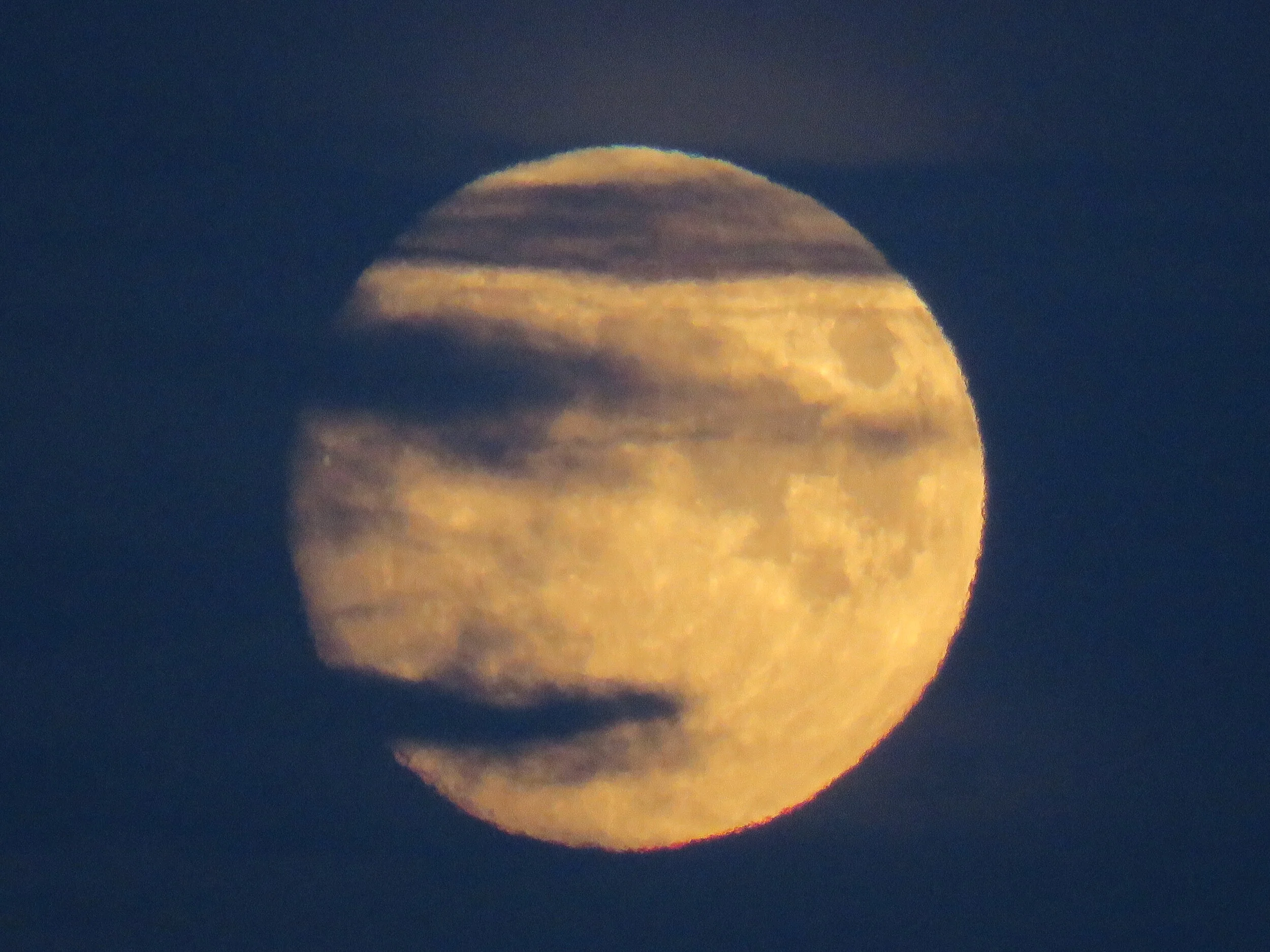 Full Moon rising through clouds